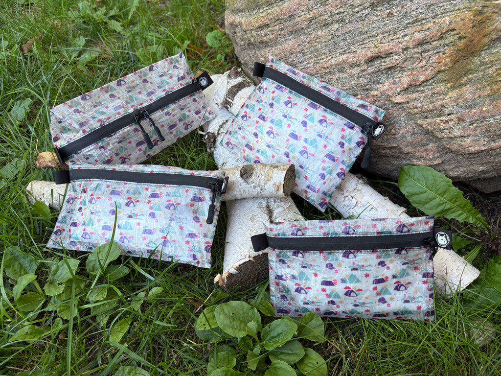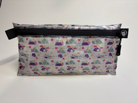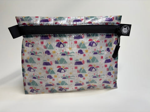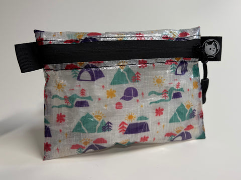Born from a shared love of the outdoors, the SBB x Hungry Hiker Zipper Pouch brings together Space Bear Bags’ craftsmanship and the joyful energy of Kathleen "The Hungry Hiker" Neves. Featuring her playful logo design, this pouch is made for wanderers, snack-lovers, and trail dreamers alike - perfect for stashing your small essentials on hikes or daily adventures.